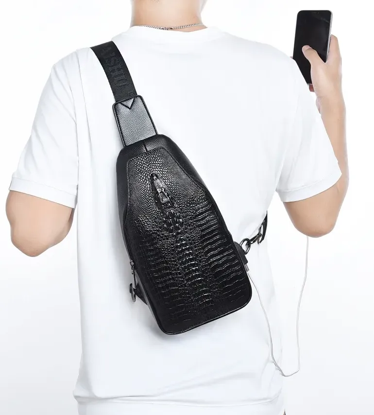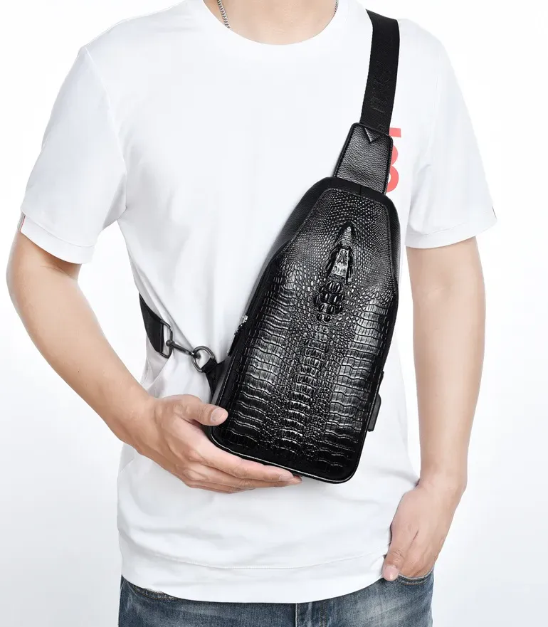 This crocodile leather chest bag is simply the perfect combination of fashion and luxury! Its outer skin is made of top-grade crocodile leather, with a delicate and unique texture, and each piece of leather seems to tell the mysterious story of nature. Under the sunlight, the luster of the crocodile skin glitters, highlighting the wearer's extraordinary taste and identity.