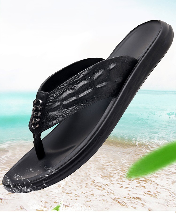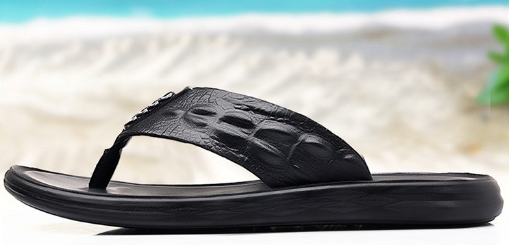 Flip-flop sandals made of crocodile leather are loved for their unique charm. Its benefits are precious material, highlighting the wearer's extraordinary taste; soft and comfortable, close to the foot, walking to enjoy a relaxed and comfortable; breathable, even in the summer heat, but also to keep your feet dry, away from the hot and humid. Characteristics, the unique texture of crocodile leather sandals fashionable aesthetic, each pair is a unique work of art; and wear-resistant and durable, long wearing can still maintain a good state, to extend the service life. In short, crocodile leather flip-flop sandals are a bright landscape in summer.